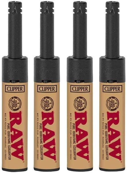 Raw Clipper Mini Tube Lighters. 24 Lighters on a tray display.