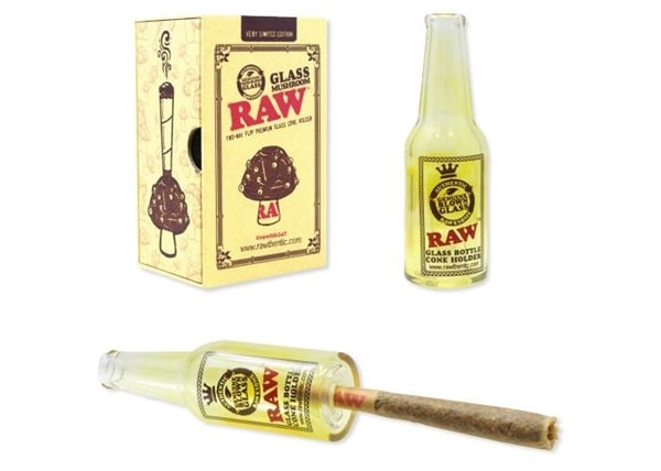 This Bottle-shaped glass cone holder is designed so you can down it straight from the bottle. The “bottle” changes color as you smoke!