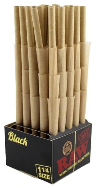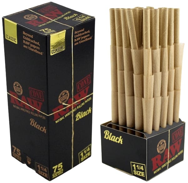 RAW Mini Bulk Prerolled Cones – Black Classic – 1 1/4. 75 Cones in a Box.