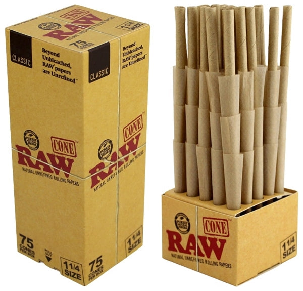 RAW Mini Bulk Prerolled Cones – Classic – 1 1/4. 75 Cones In A Box.