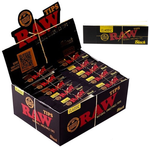 RAW Rolling Paper Tips – Black 50pk. 50 Tips/Pack, 50 Packs/Box. 1ct.