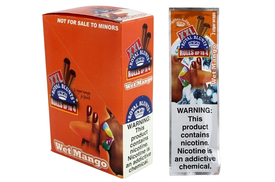 Royal Blunts XXL Kush – Wet Mango. 25 Pouches Per Box With 2 Cigar Wraps Per Pouch.