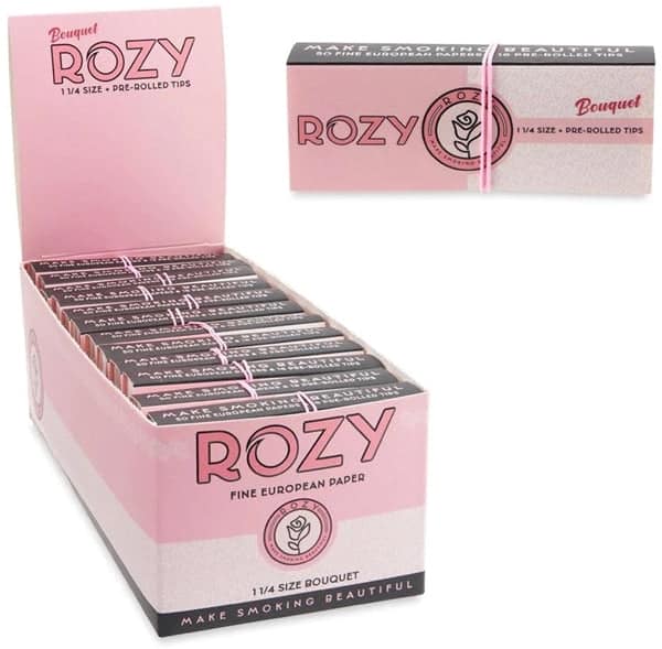 Rozy Pink Paper + Tips – 1 1/4 Size Bouquet. 24 Packs in a box display with 50 Papers and 16 tips per pack.