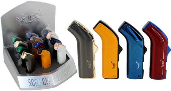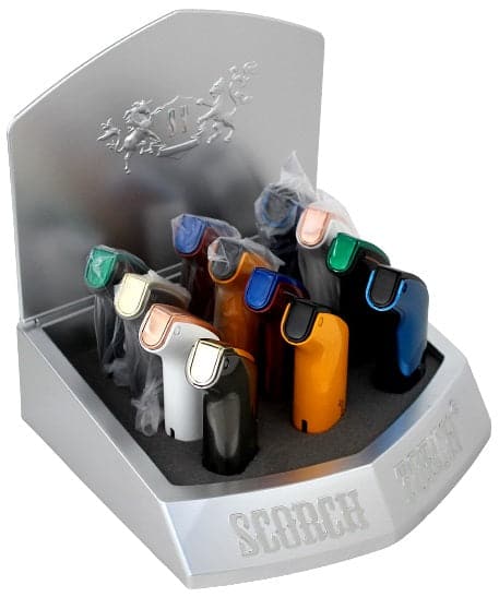 Scorch Torch Cigar Lighter with Butane Window and Built in Cigar Punch. 12 Lighters in a Display.