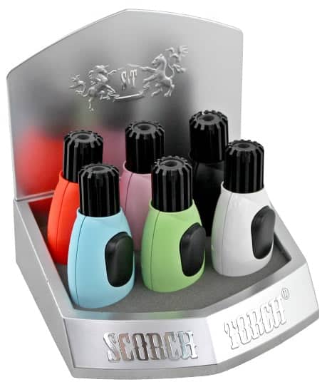 Scorch Torch Modern Button Aerodynamic Nozzle With Bush Button-Matte Finish. 6 Lighters In A Display.