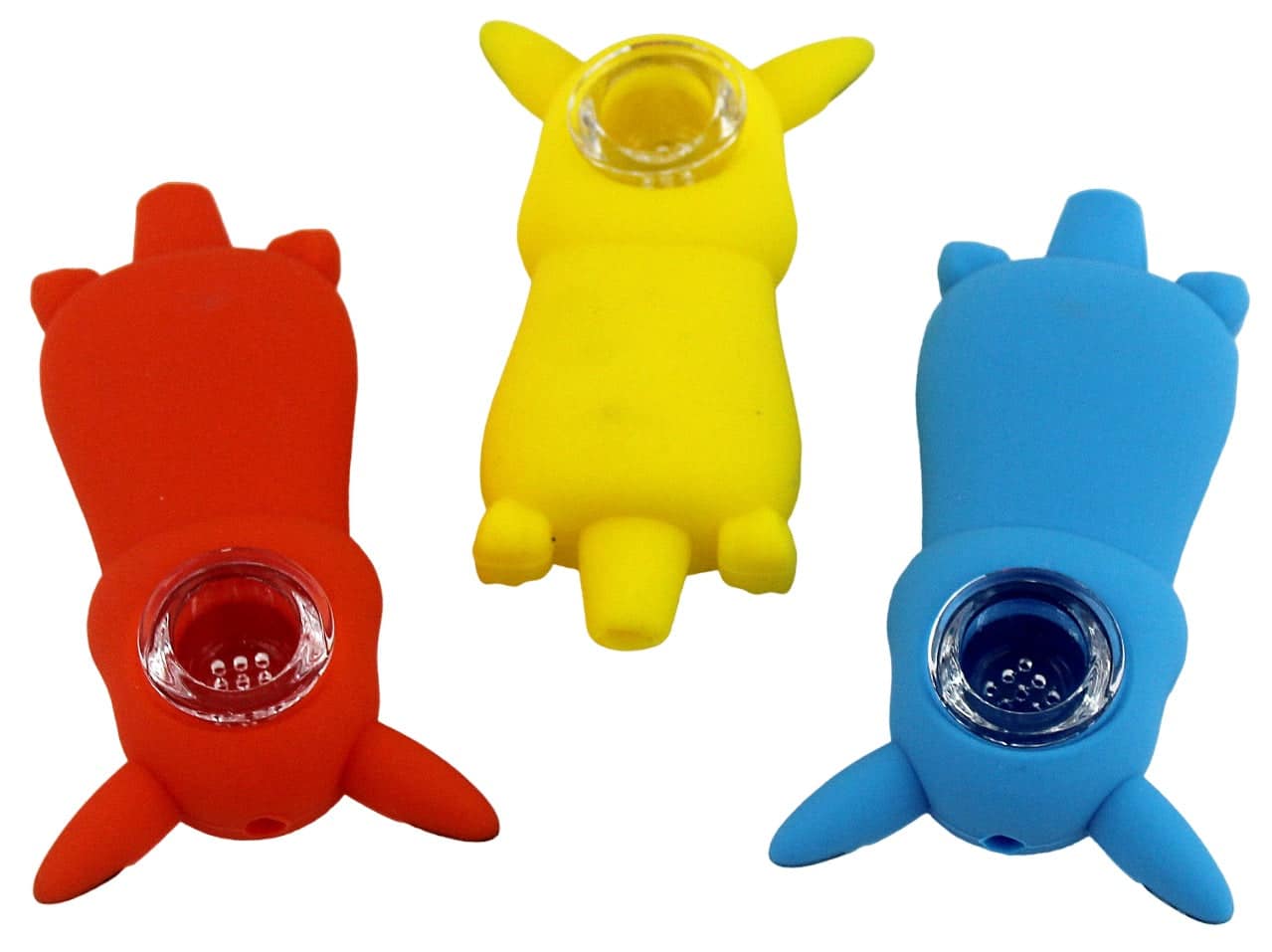 Silicone Hand Pipe with Glass Bowl – Pika. Colors May Vary. 4″. 1ct.