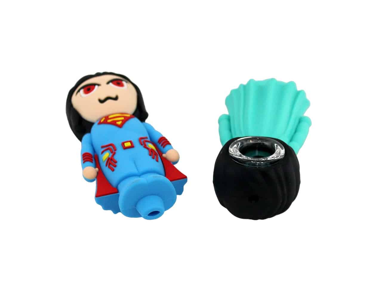Silicone Hand Pipe with Glass Bowl – Superman. Colors May Vary. 4″. 1ct.