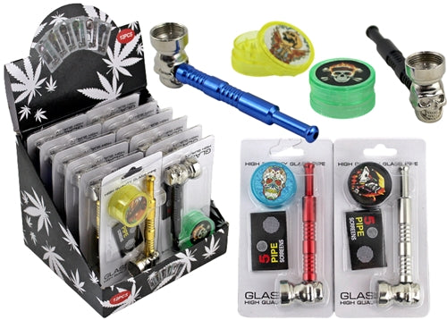 3.5″ Skull Face Metal Pipe with 30mm Grinder and Screens. 12 Packs in A Box Display.