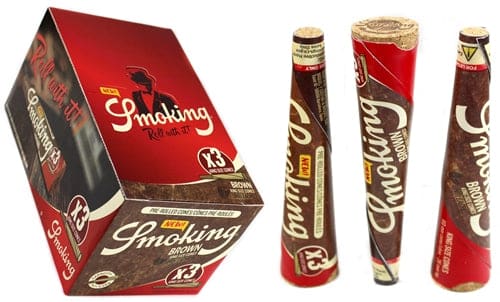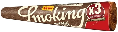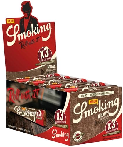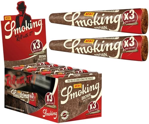 Smoking Brown 3pk Pre-Roll Cones – King Size. 50 Packs In A Box Display With 3 Cones Per Pack.
