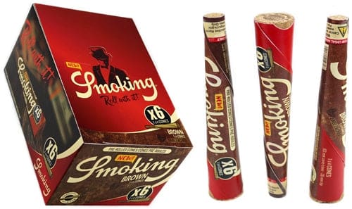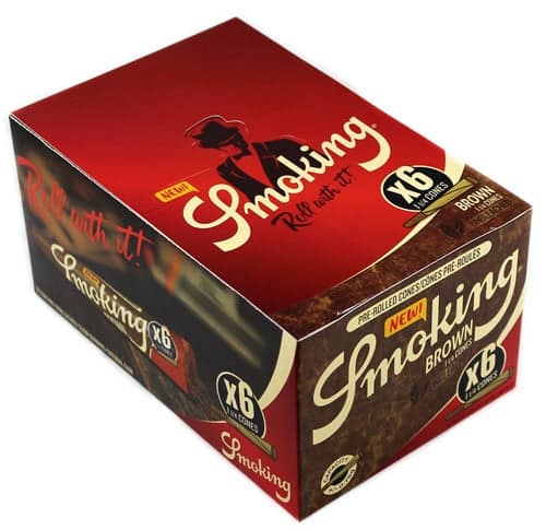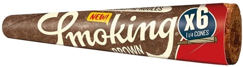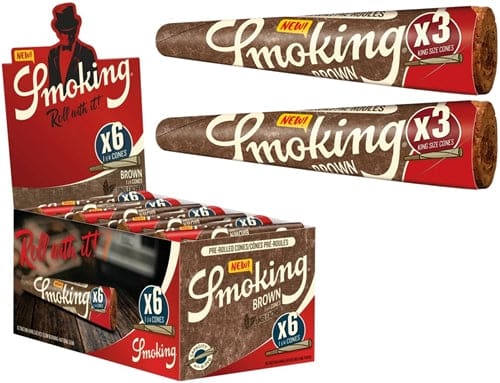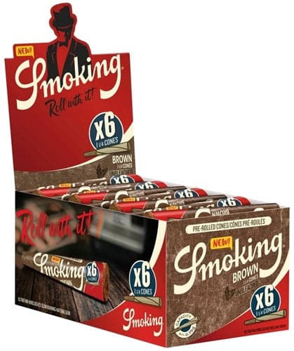 Smoking Brown 6pk Pre-Roll Cones – 1 1/4 Size. 50 Packs In A Box Display With 3 Cones Per Pack.
