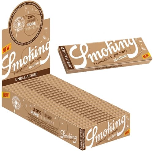 Smoking Thinnest Brown Unbleached Rolling Paper – 1 1/4 Medium Size. 50 Leaves In Each Booklet With 25 Booklets In A Box Display.