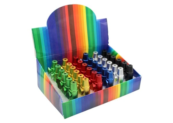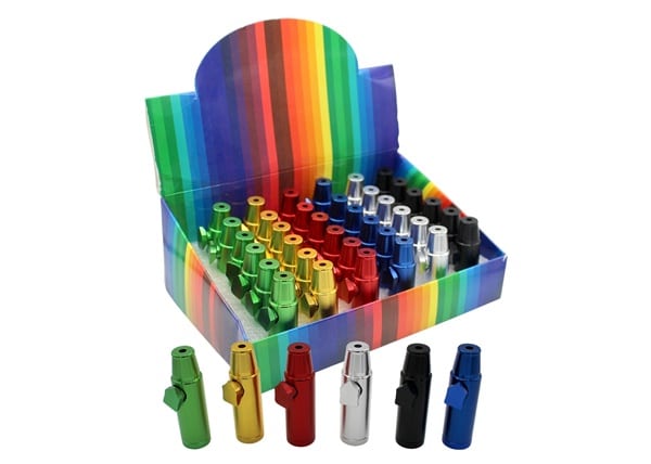 Snuff Bullet Assortment – Tapered. 2″. 36 Metal Sniffers in a Box Display.