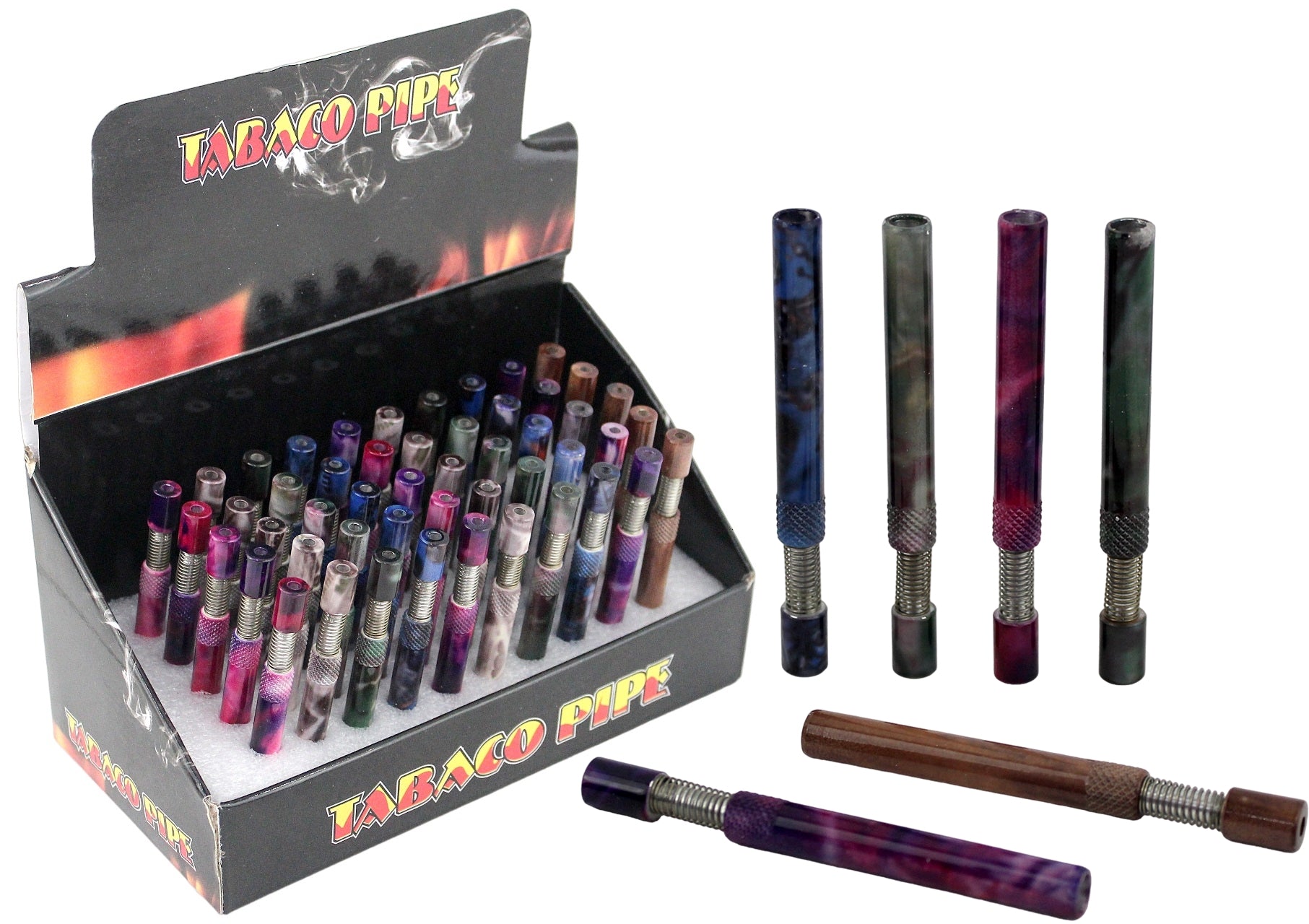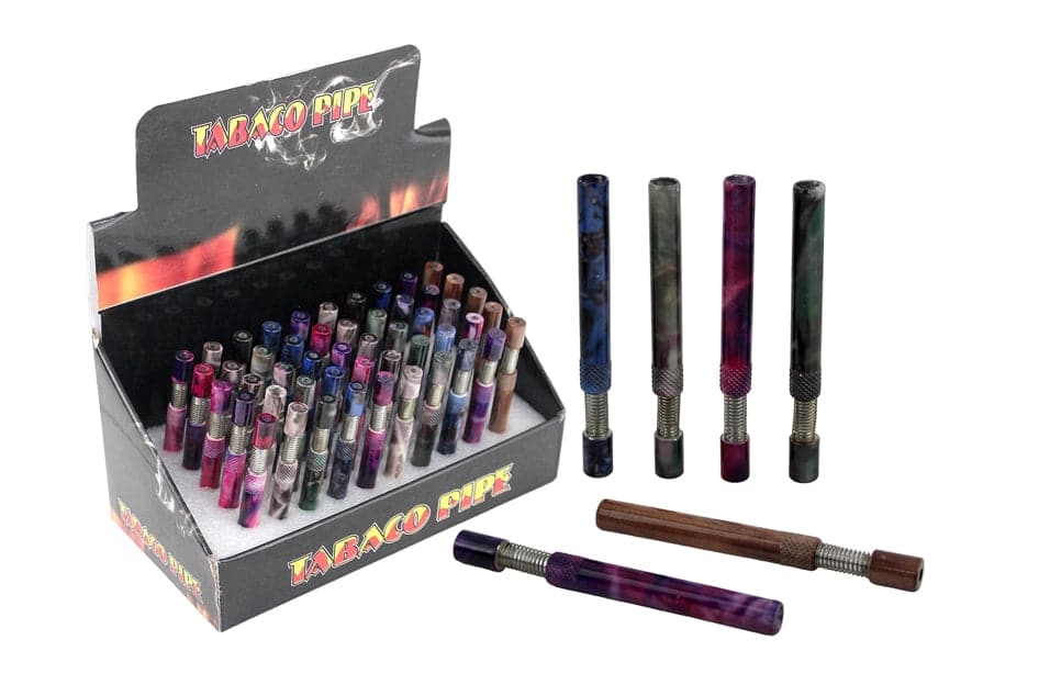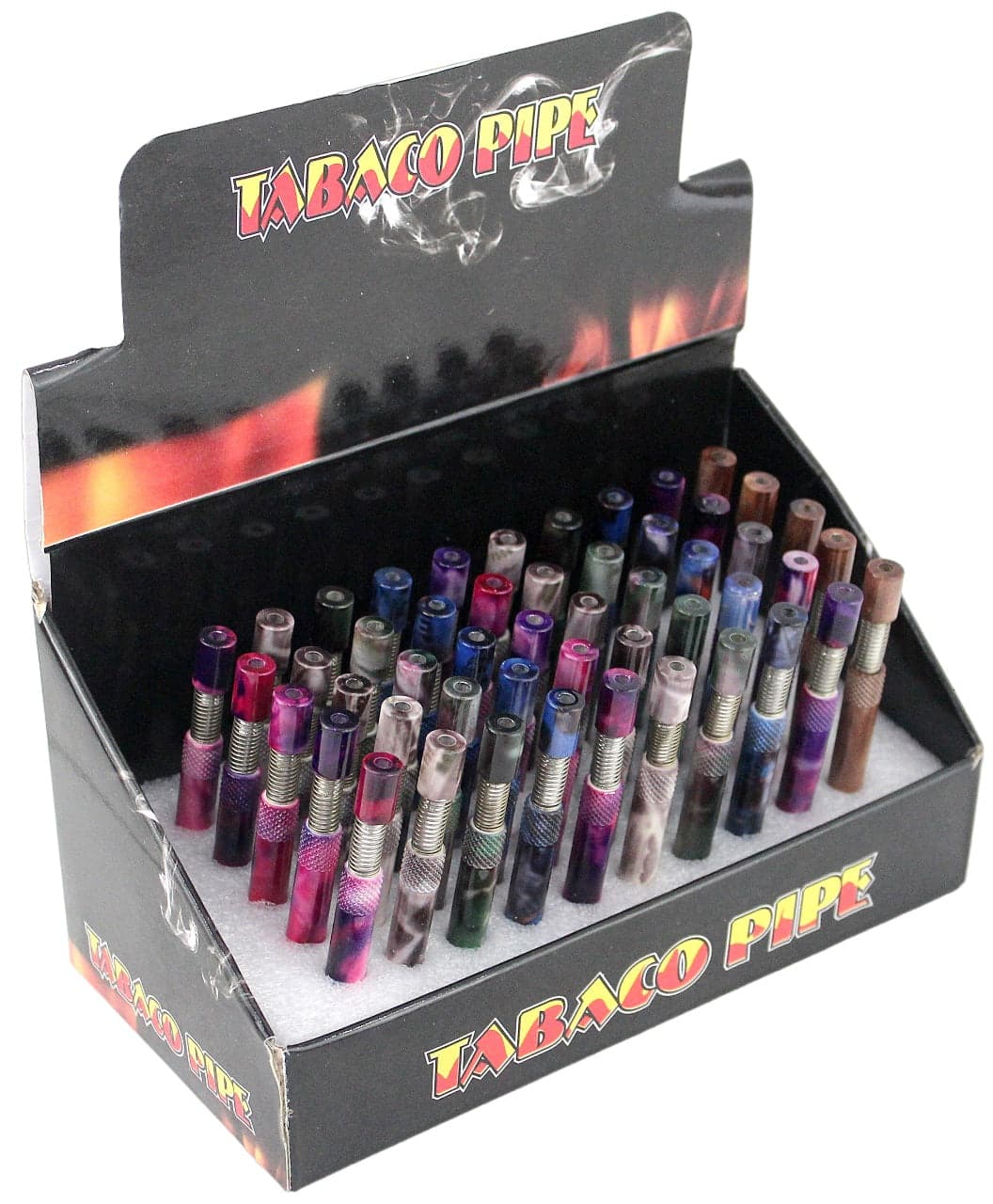 Spring Loaded Metal Pipe One HItter Chillum – Mix Colors Design. 50 Chillums in a box display.
