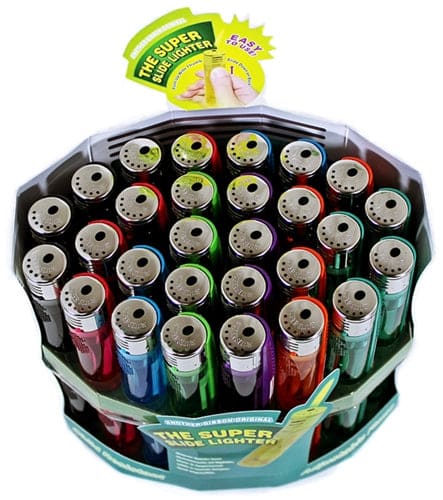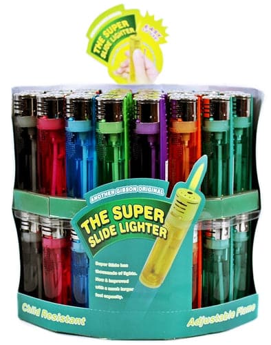 Super Slide Refillable Lighter. 56 Lighters In A Display.