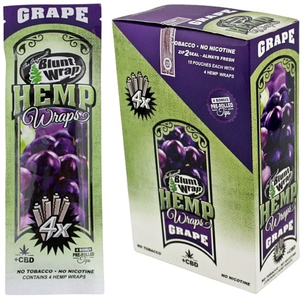 The Original Blunt Wrap – Hemp Wraps – Grape. 15 Pouches in a box display with 4 Hemp Wraps Per Pouch.