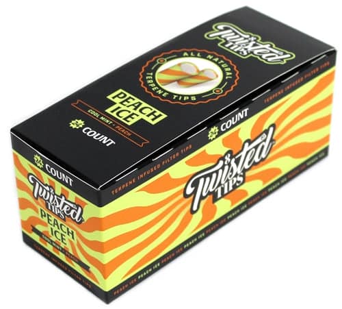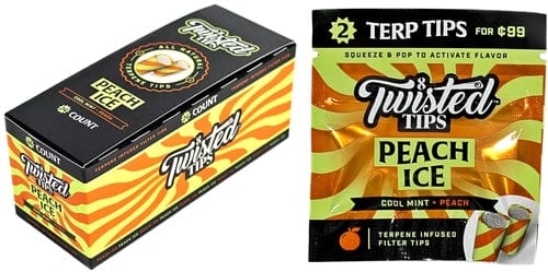 Twisted All Natural Terpene Tips – Peach Ice. $.99 Pre Priced. 24 Packs In A Box display With 2 Tips Per Pack.