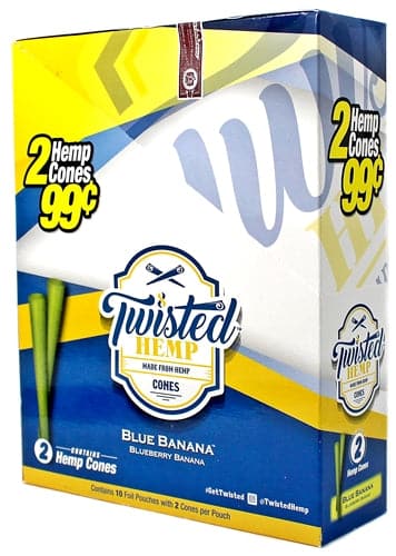 Twisted Hemp CONES – Blue Banana. 10 Pouches In A Box Display With 2 Cones Per Pouch.