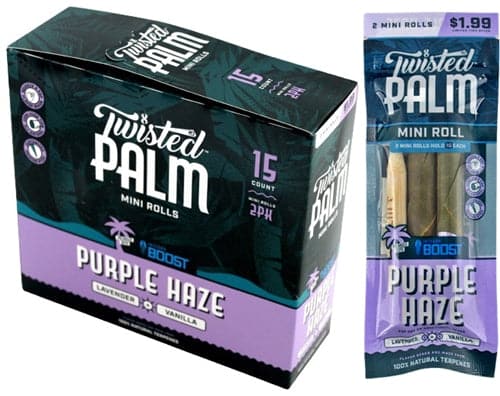 Twisted Palm Mini Rolls – Purple Haze. 15 Packs In A Box With 2 Rolls Per Pack.