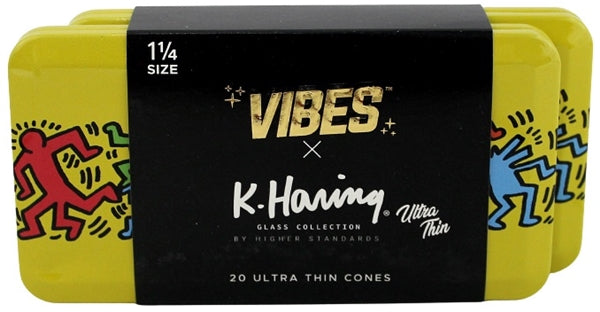 VIBES x K. Haring Pre-Rolled Cones – 1 1-4 – Ultra Thin – 2pk Bundle Collectable Tin. 1ct.