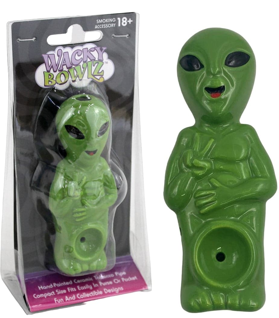 Wacky Bowlz Ceramic Hand Pipe – Alien. 4.25″. 1ct.