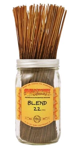 100 hand-dipped Blend 22™ incense sticks. A fruity mix of over a dozen fragrances. Notes include strawberry, heliotrope blossom, ginger, peach, patchouli and cinnamon spice. *Jar Not Included.