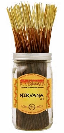 100 hand-dipped Nirvana Incense Sticks. A soothing fragrance blend with notes of rich vanilla, warm patchouli, lavender, amber and spicy carnation. Jar Not Included.