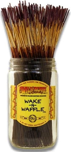 100 hand-dipped Wake-N-Waffle incense sticks. An indulgent essence of dried fruits and maple syrup infused into golden vanilla.. Jar Not Included.