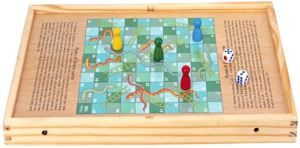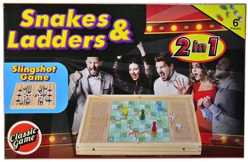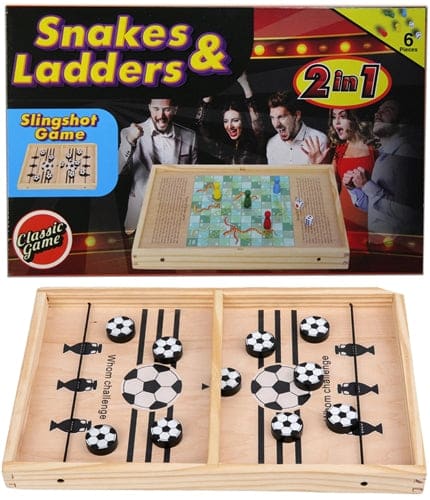 Wood Slingshot Snakes and Ladders 2 in 1 Game. 1ct.