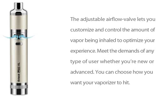 The adjustable airflow-valve lets you customizer and control the amount of vapor being inhaled to optimize your experience.