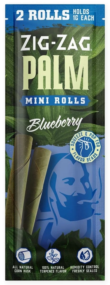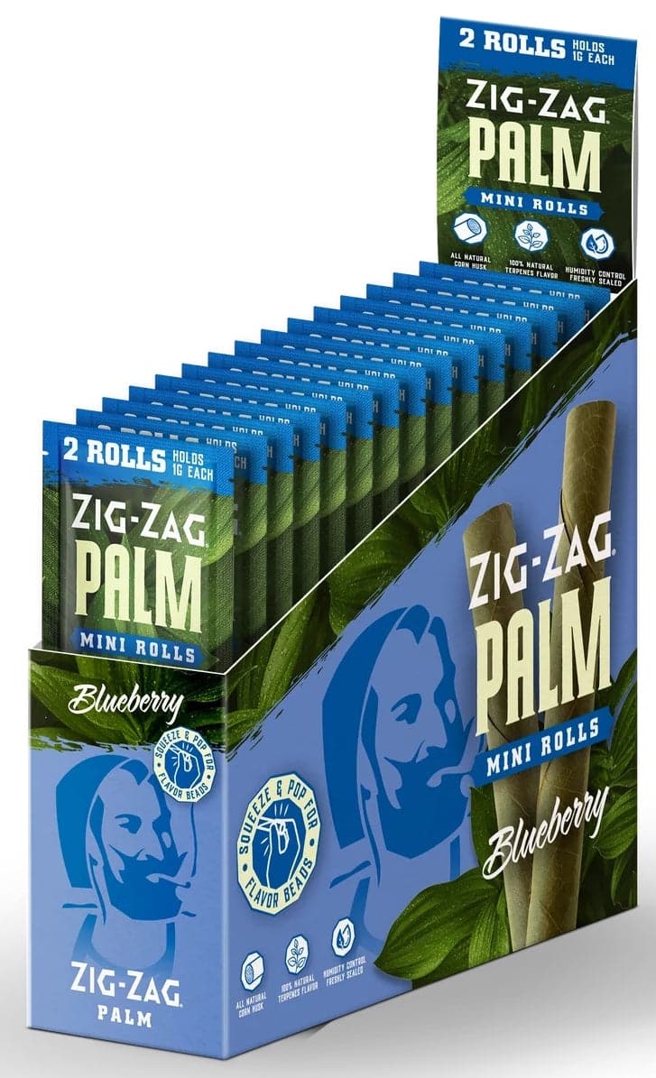Zig Zag Mini Palm Rolls – Blueberry. 15 Packs in a box display with 2 rolls per pack.