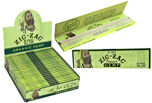 Zig Zag Organic Hemp Rolling Paper – King Size Slim. 24 Booklets in a box with 32 papers per boolet.