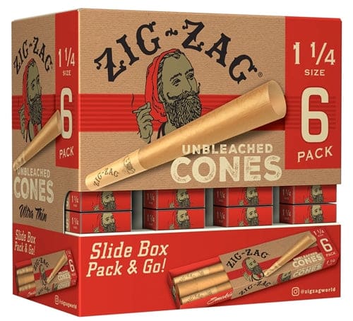 Zig Zag Pre-Rolled Unbleached Cones 1 1/4. 36 Packs Of 6 Cones Each.